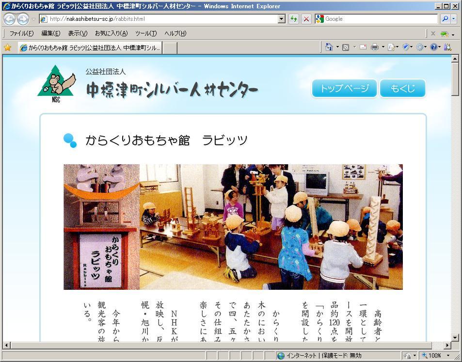 高齢者と子どもとの交流事業の一環として、事務所二階の全スペースを開放し、小林竹春さんの作品約120点を並べ「からくりおもちゃ館ラビッツ」を開設しています。