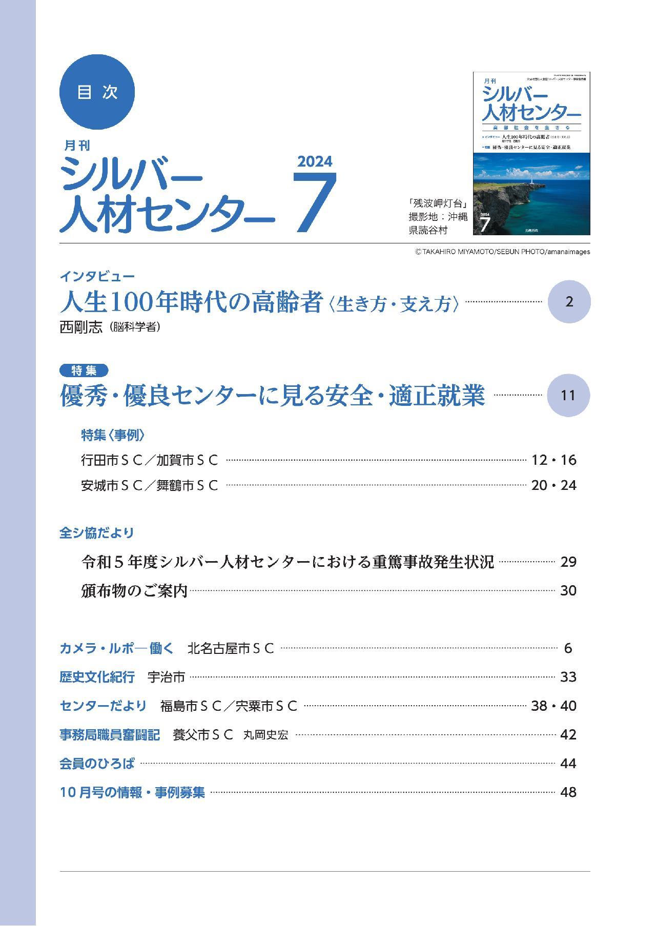 月刊シルバー人材センター 2024年7月号の内容